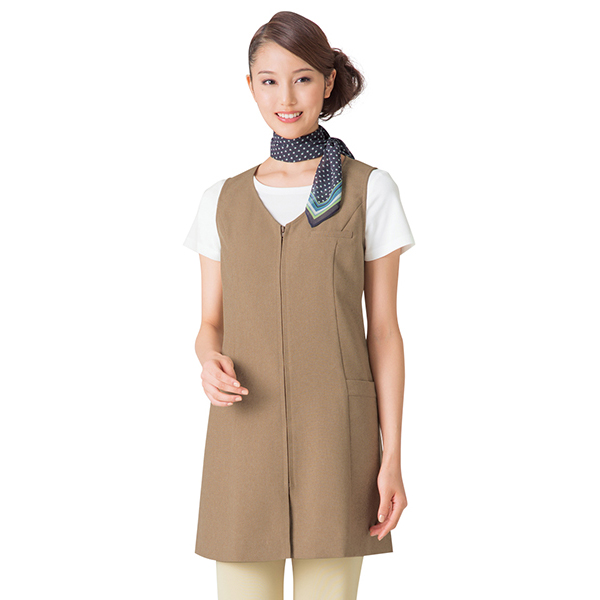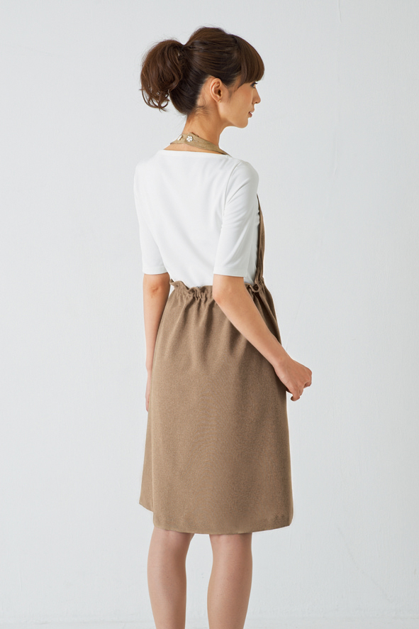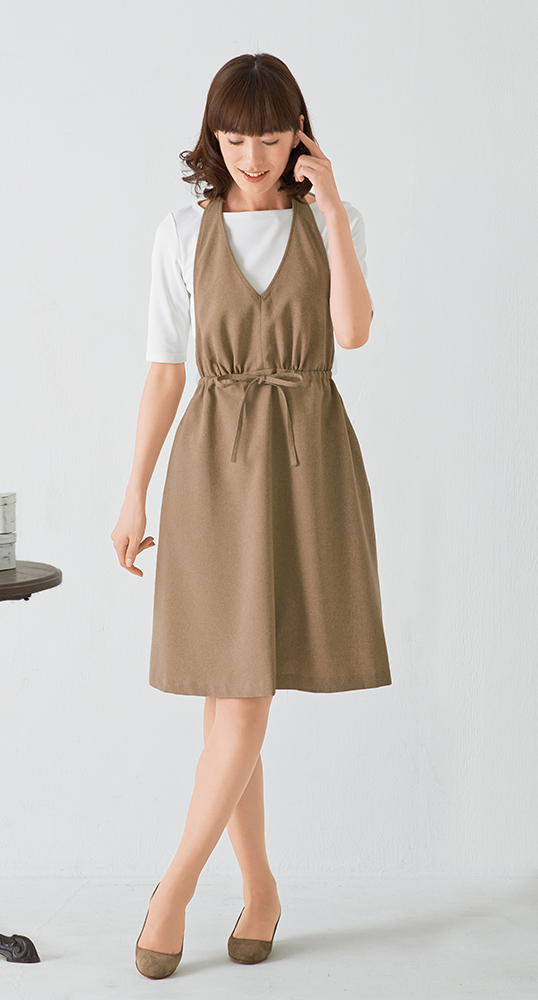 【HOW CounterBiz/ハネクトーン早川株式会社-WP758-5】ホルターギャザーワンピース(カフェオレブラウン)【コンフォートシャンブレー】