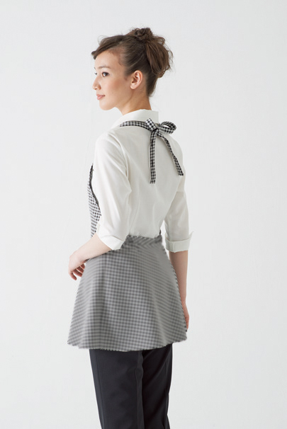 【HOW CounterBiz/ハネクトーン早川株式会社-WP763-18】ペプラムエプロン(ブラック×ホワイト)【モノトーンチェック】
